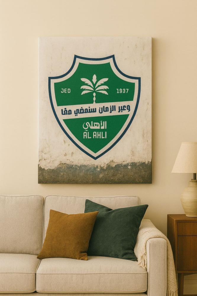 هل ترغب في إضافة لمسة من الفخر والانتصار الرياضي لمنزلك؟ يبقى شعار العز مشرق ما غرب" لوحة رياضية فاخرة مصنوعة من قماش كانفاس فاخر مشدود على إطار خشبي مخفي مع طباعة عالية الوضوح لعرض الشعارات الرياضية المشرقة. جاهزة للتعليق مباشرة وبمقاسات متعددة تناسب اختيارك.
